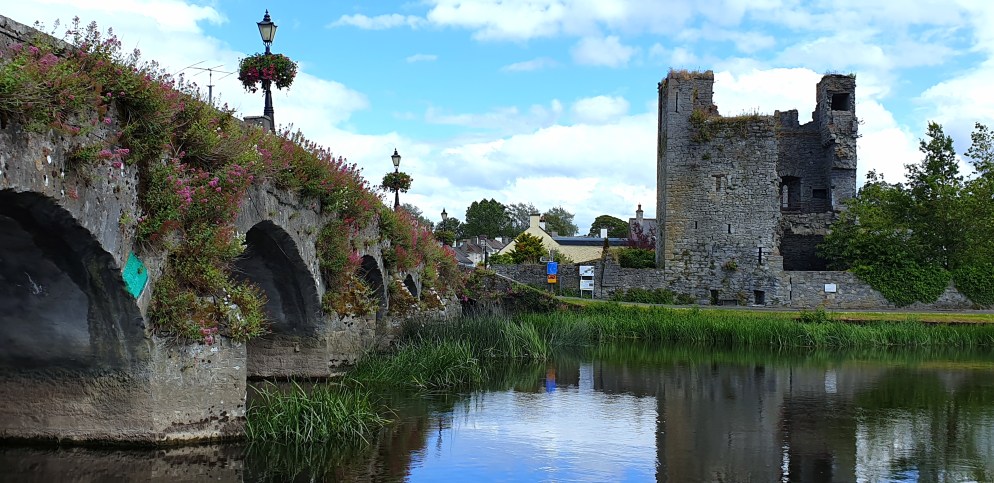Our destination today was the town of Borris in County Carlow, our route taking us up through the Wicklow Gap and down through undulating roads lined with green paddocks, stone walls and lots of cows! Along the way we stumbled on the Black Castle at Leighlinbridge, not much of it left, but quite lovely right by the river.