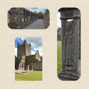 Our first ancient ruin of the day was Jerpoint Abbey. Quite a small site, but with a wonderfully well-informed guide, we spent about an hour there. Originally founded by Benedictine monks in 1158, the Cisternians made a takeover bid 20 years later. The cloisters are the best preserved part of the Abbey, with intricate stone carvings of monks and figures depicting the 7 deadly sins on the pillars. This little fellow can be seen clutching his rosary beads.