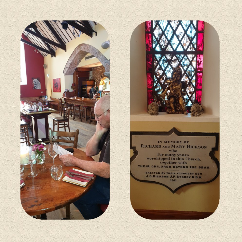 We dined tonight on tapas at an old church in Killgorglin that had been converted into a restaurant. Interesting monument saved from the old church with reference to Sydney. But the best part? No chips!