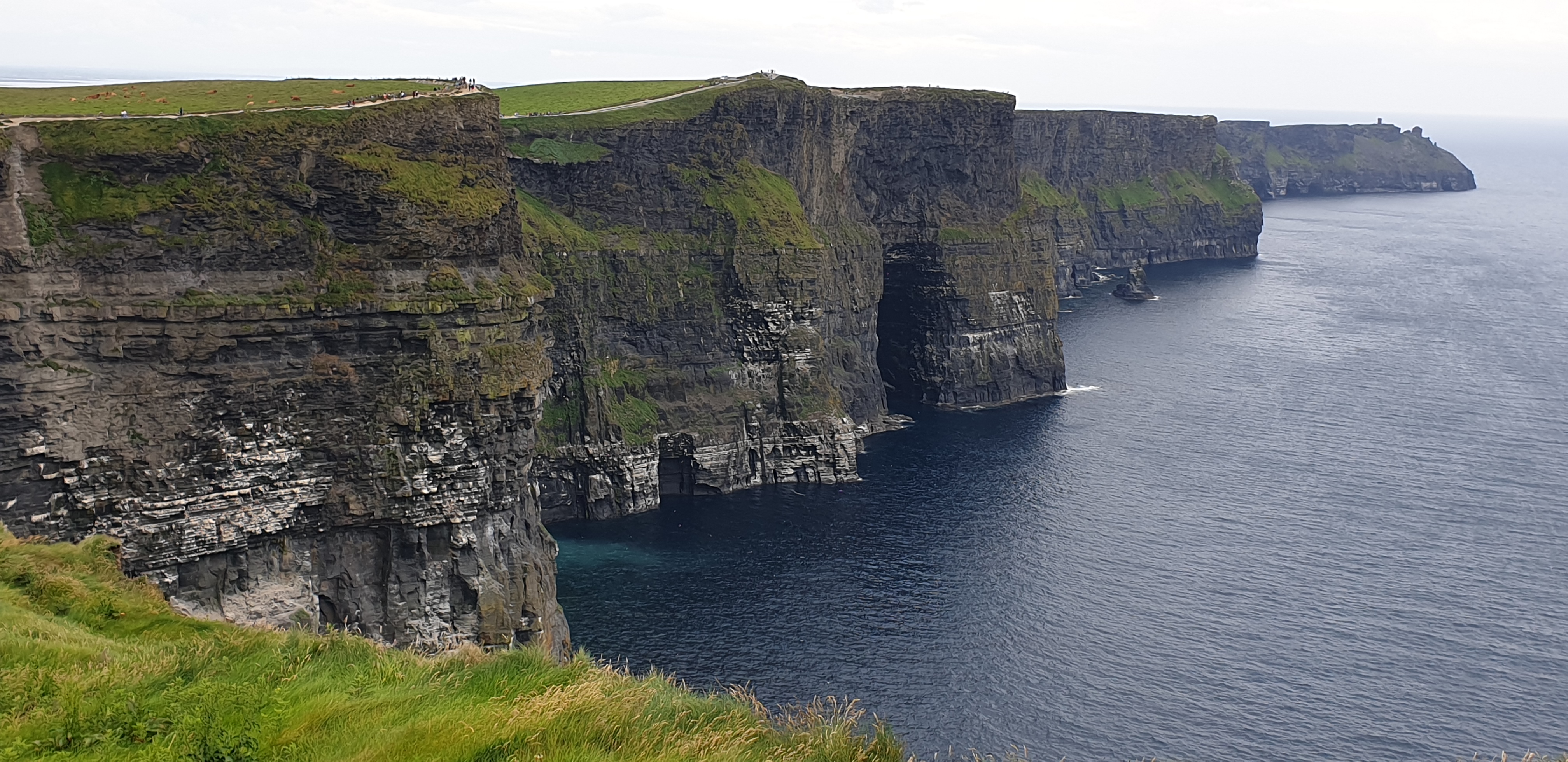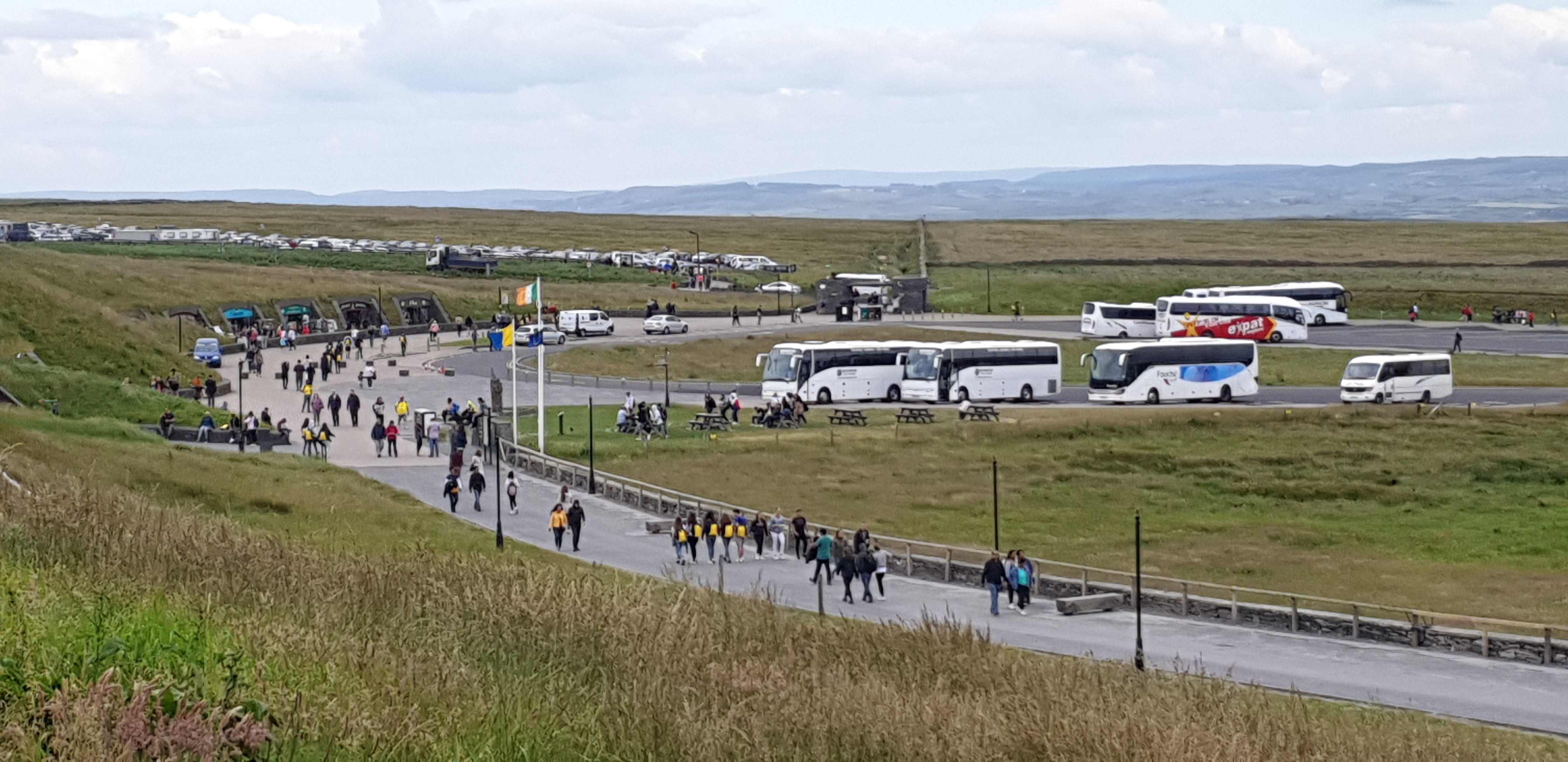 Travelling on to the Cliffs of Moher, we encountered tourism en masse at Ireland’s No1 natural tourist attraction. The scene at the Carpark was better than the Cliffs! People everywhere, exacerbated by the Irish Open starting at Lehinch, a village just down the road.