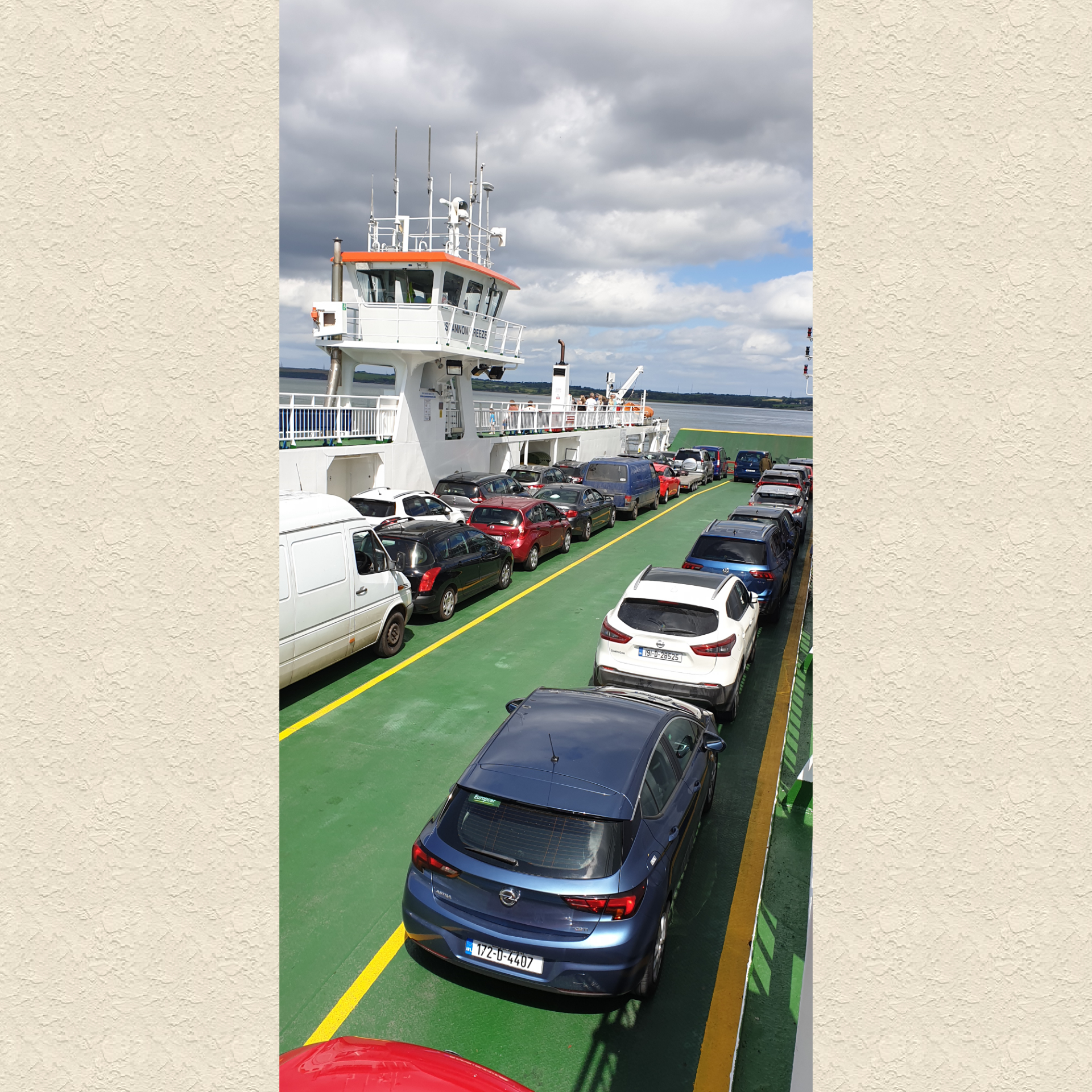 Today our destination was an area of County Clare called The Burren. To get there we took a short cut by ferry across the mighty Shannon River from Tarbert to Kilrush. Our white Nissan now renamed Niamh (Thanks Jane), in the foreground.