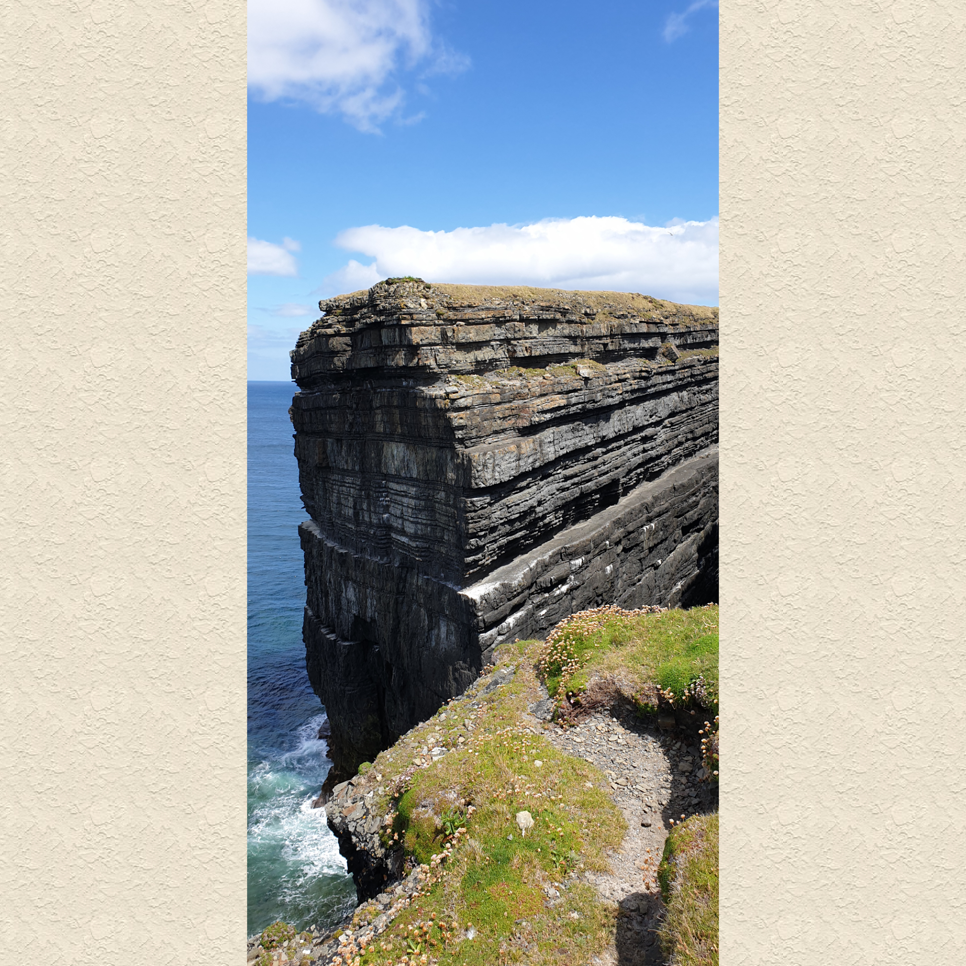 Believe it or not, between this pillar of rock and where I am standing taking the photo, there is a 50m chasm down to the sea. I was too scared to get any closer! They call the sea stack lovers leap after legendary Diarmuid and Grainne who fled there pursued by her bethrothed Fionn MacCool, whom she didn’t love. Not cool enough apparently! They supposedly took refuge on the stack.