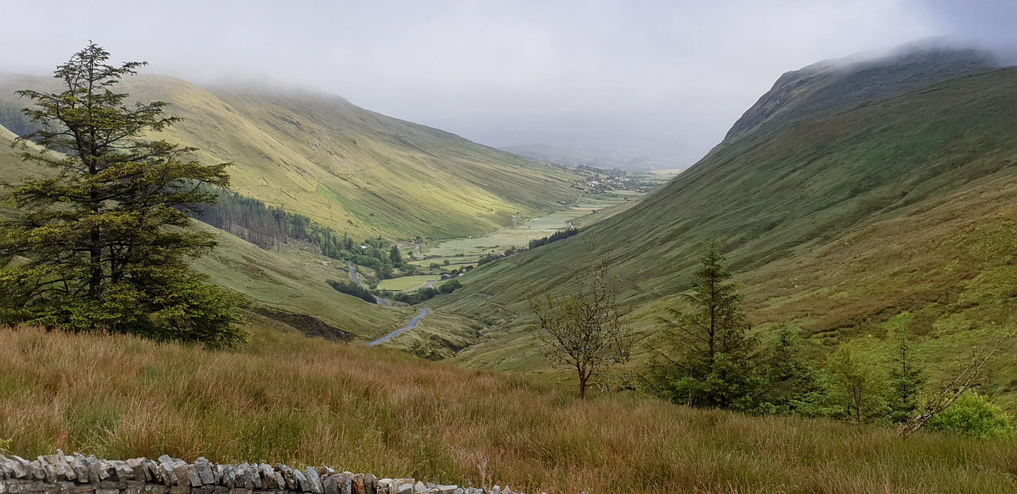 Headed north again through the Glengesh Pass with low clouds shrouding villages and surrounding mountains.