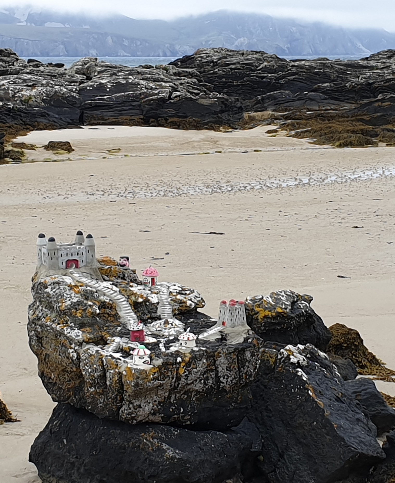By now it had fined up and we took another detour off the main road along the seashore to Dunmore Head, passing a rather random little sculpture.