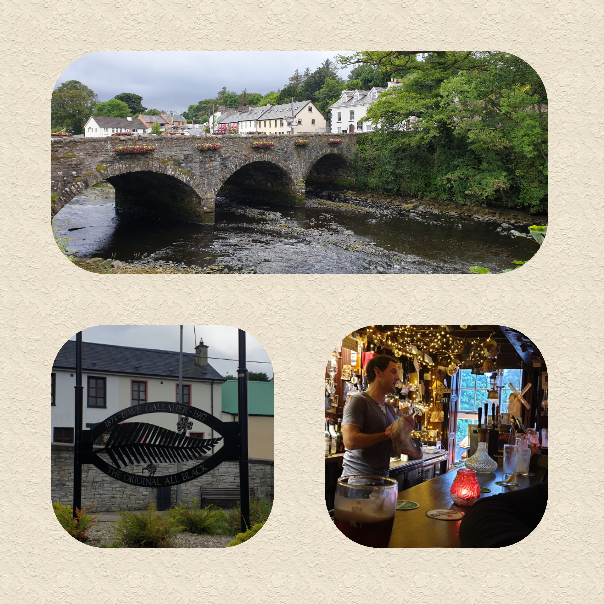 Our home tonight is at Rathmelton, a pretty Georgian town on the River Lennon. As luck would have it, our visit has coincided with the Lennon Festival, so the town was ‘buzzing’. As well as the festival, we discovered that an inhabitant of the town, Dave Gallagher, captained the All Blacks after he emigrated to NZ as a child. He was killed in WW1, but there is a great memorial to him in the village.