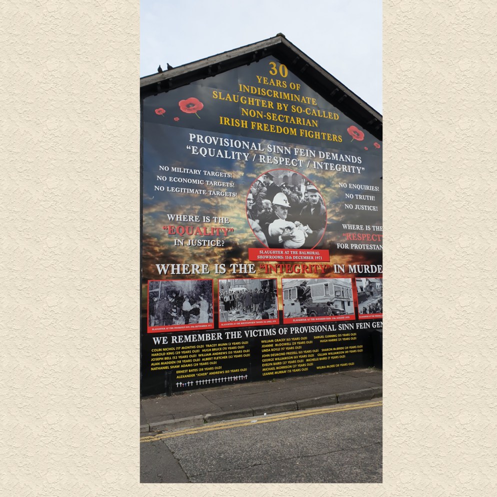 in reality, a 6m high and 4km long wall. In one step, we were in Protestant West Belfast.
