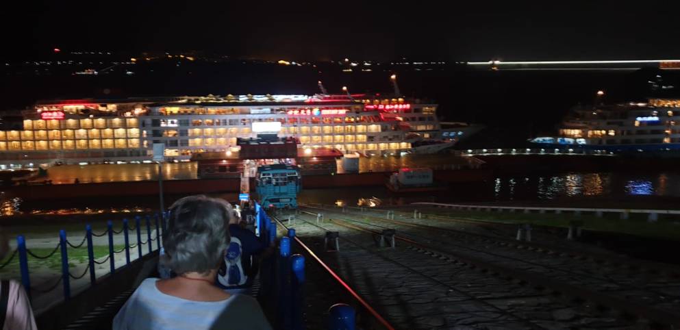 Our ship, the Yangtze 2, was moored on the river, about 200m below the roadway. By the time we arrived, it was dark, so we had to negotiate our way down about 500 steps in poor lighting and with some trepidation. Luckily our bags were taken down for us. We could have taken a cable car down for $2, but thought it was for the oldies. Needless to say, we didn’t do it again! (We were to be here 24 hrs)