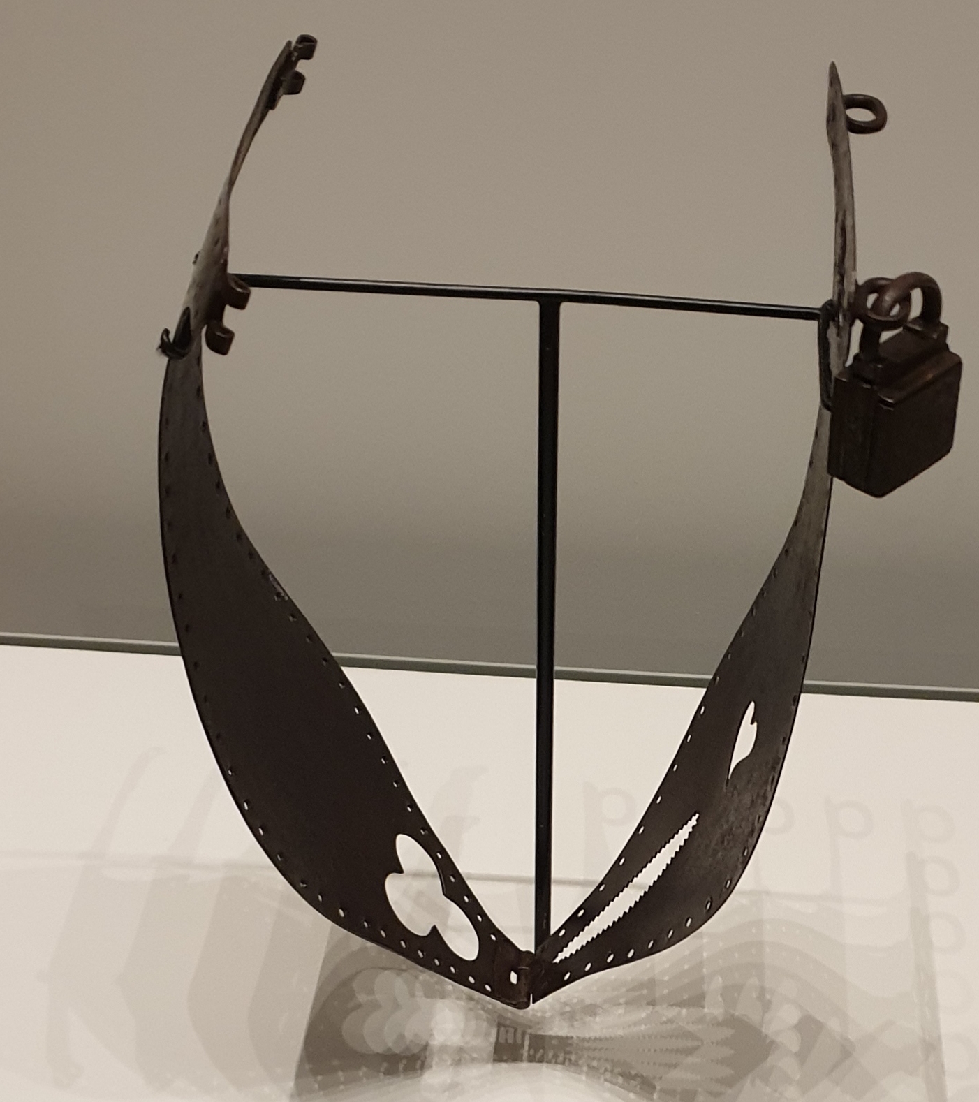 Especially for the ladies was a chastity belt and an iron mask called a Scold’s Bridle that could be locked over a woman’s head to stop her from talking.