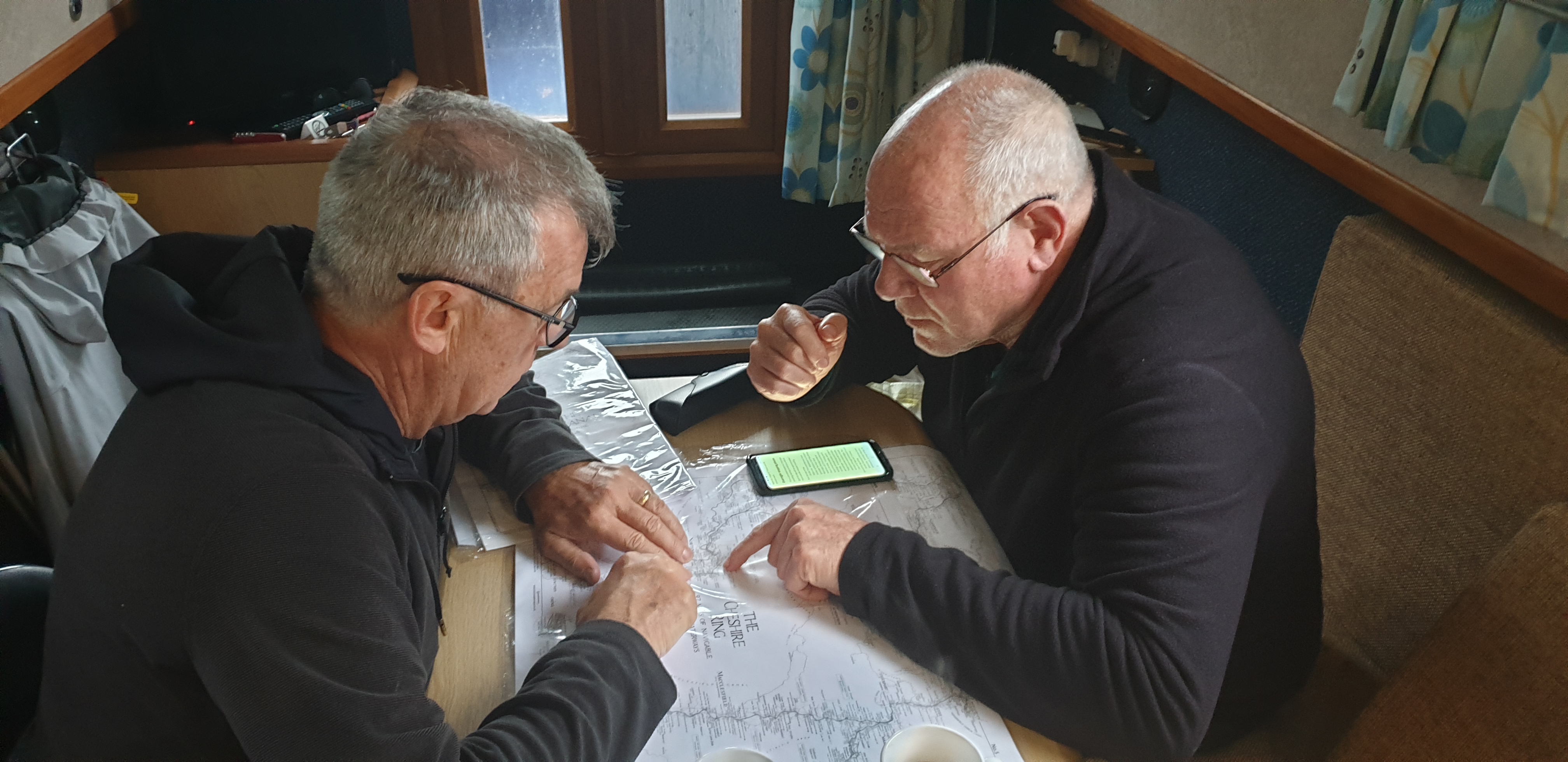 The Admiral and Vice Admiral conferred over maps and books, while the galley slave cooked up a storm for breakfast.