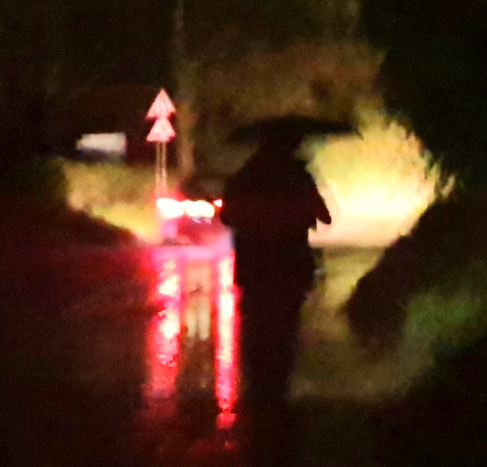 By now the rain was bucketing down, so it was a very long, soggy walk home. Can you see John with his umbrella in this washed out pic?