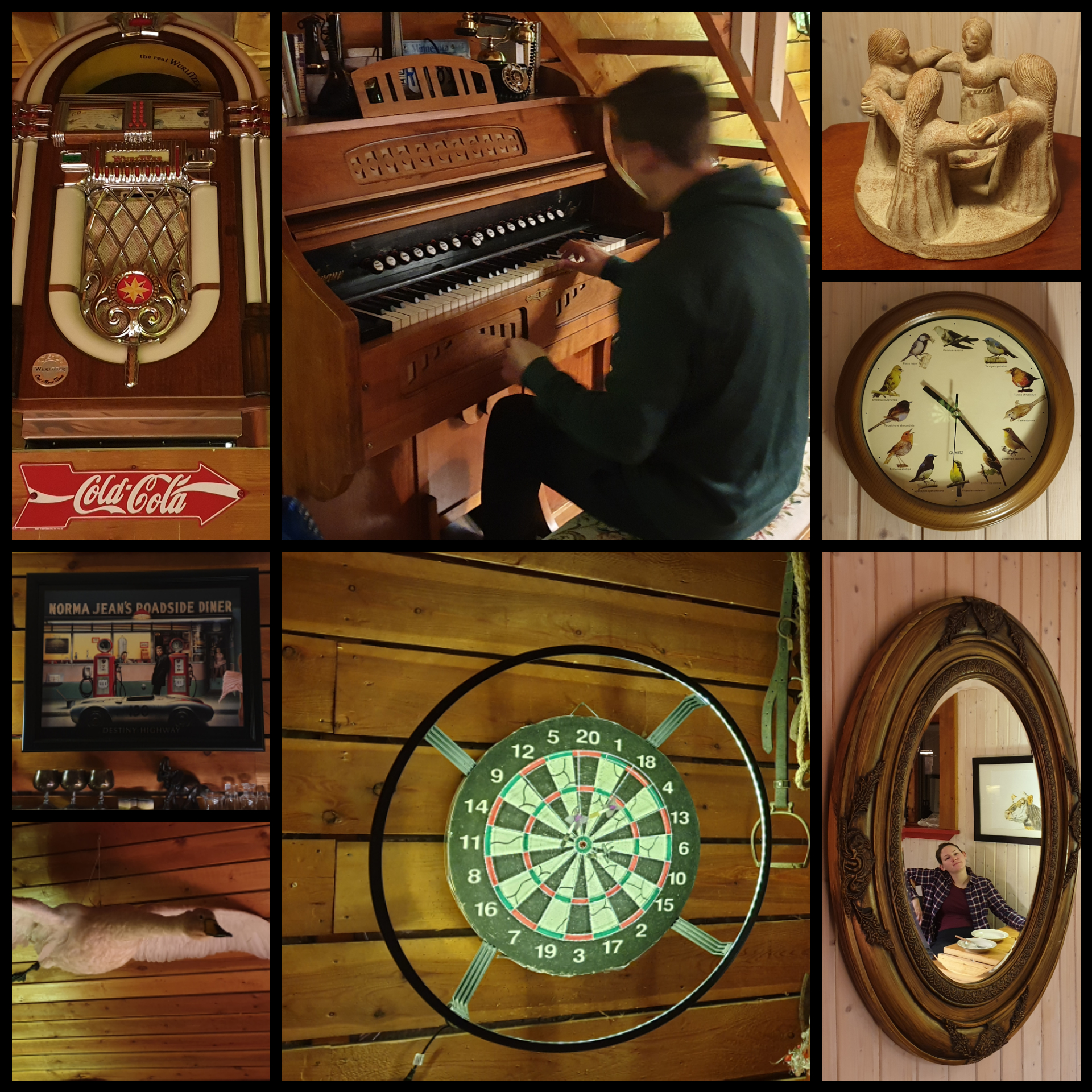 But by far the most bizarre find of the day was our Airbnb. Originally our host Eysteinn’s ‘mancave’, his wife told him it was needed to bring in some more cash for the family. So it was converted into accommodation. Totally weird, filled with all sorts of ‘stuff’. A stuffed albatross, Whirlitzer jukebox, an organ, illuminated darts board…..
