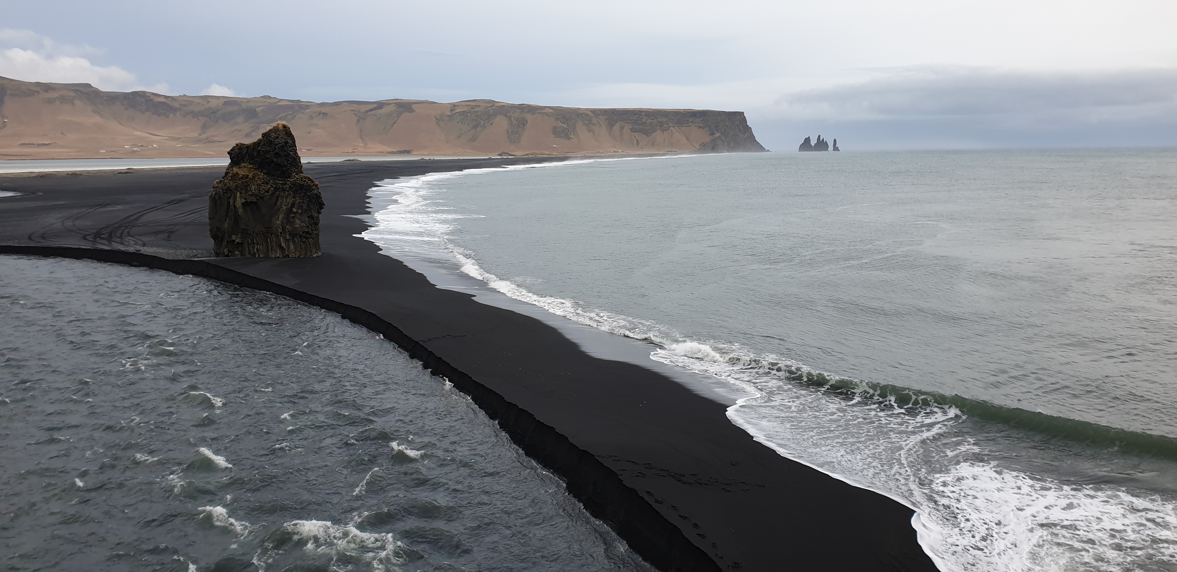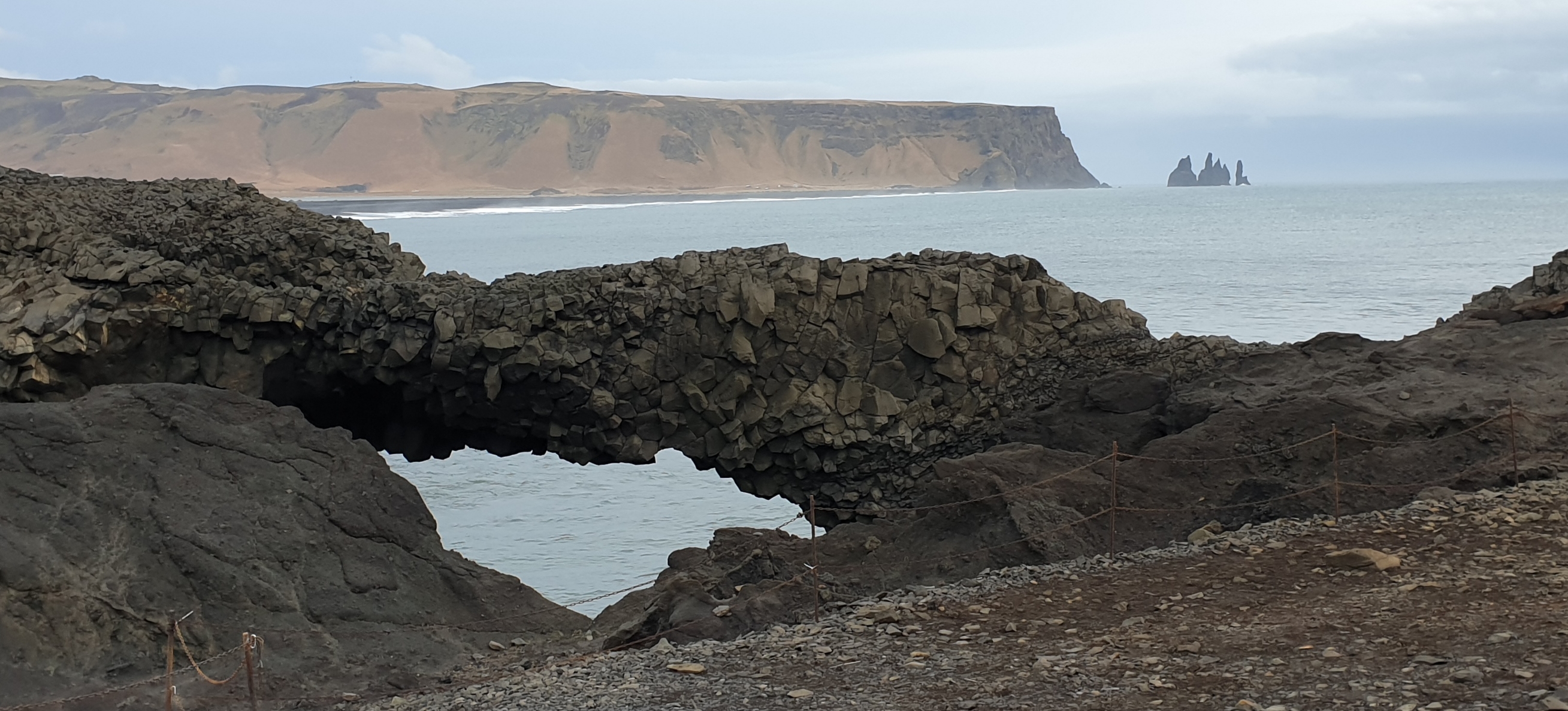 The light was fast fading, so we hightailed it off to our last stop, Dyrhòlaey, a huge stone arch next to a rocky plateau. The sand was the blackest I’d ever seen.