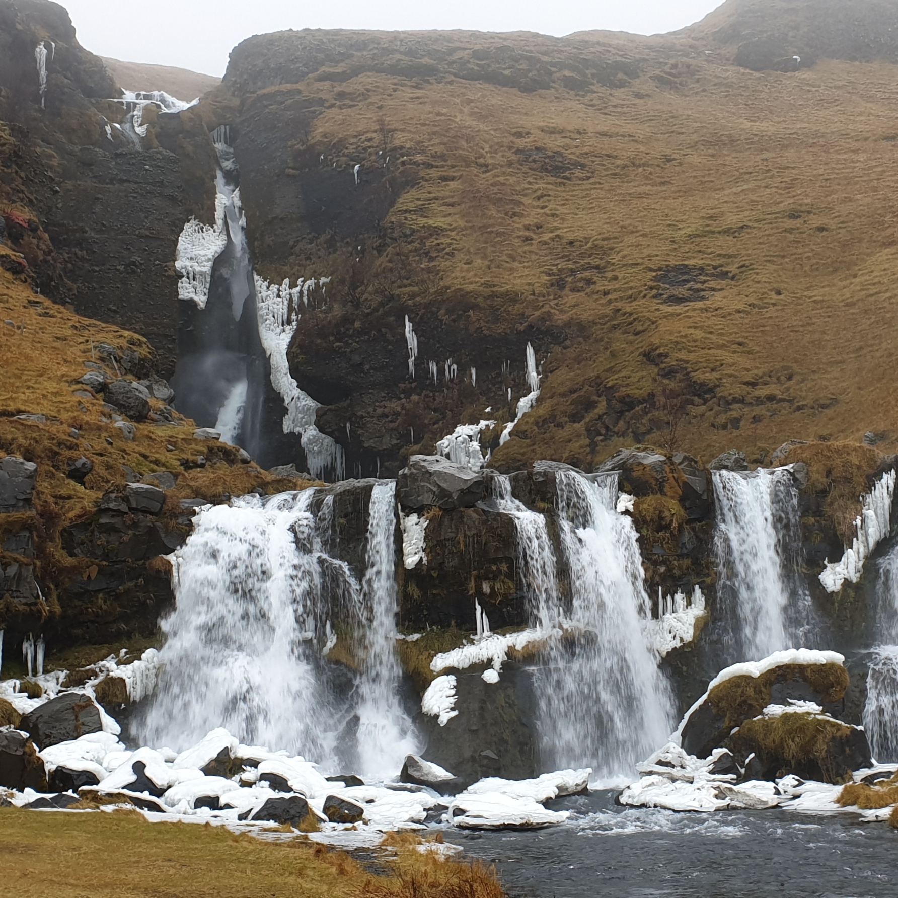 After climbing the first cascades you reached the upper drop, falling into a deep pool. The frozen icicles around the edges made it look very pretty, and very cold!