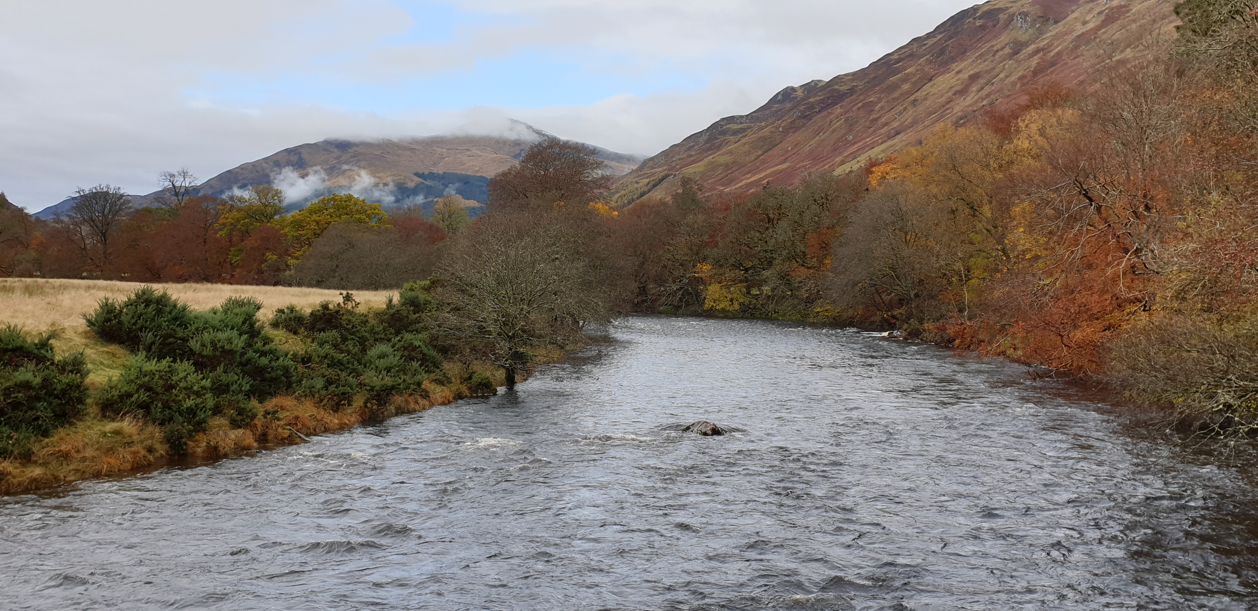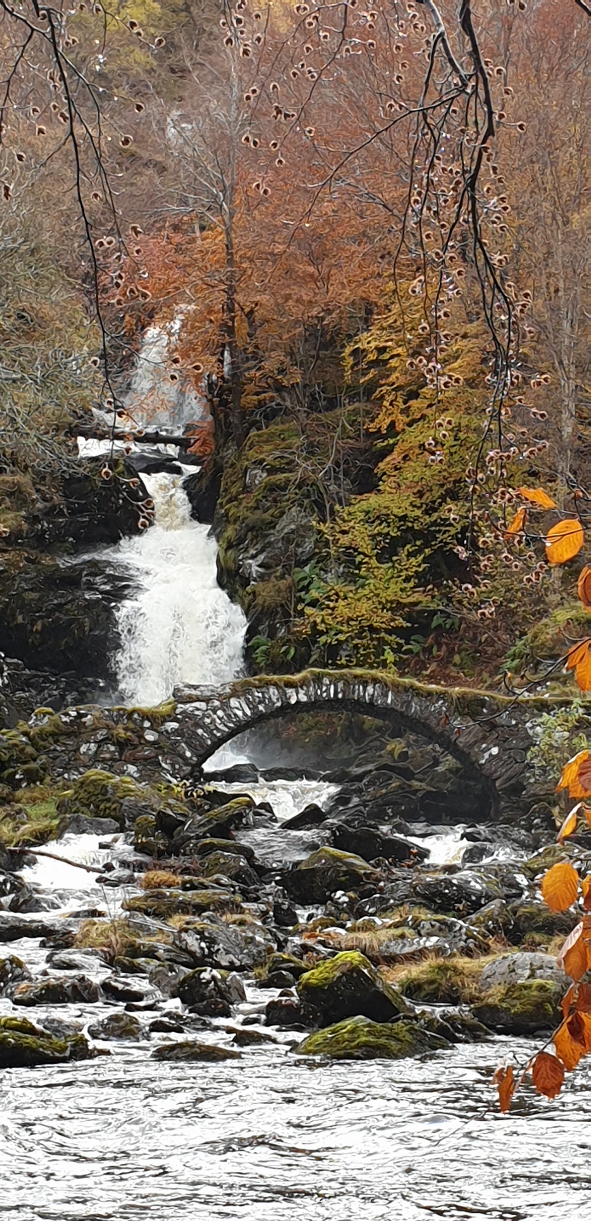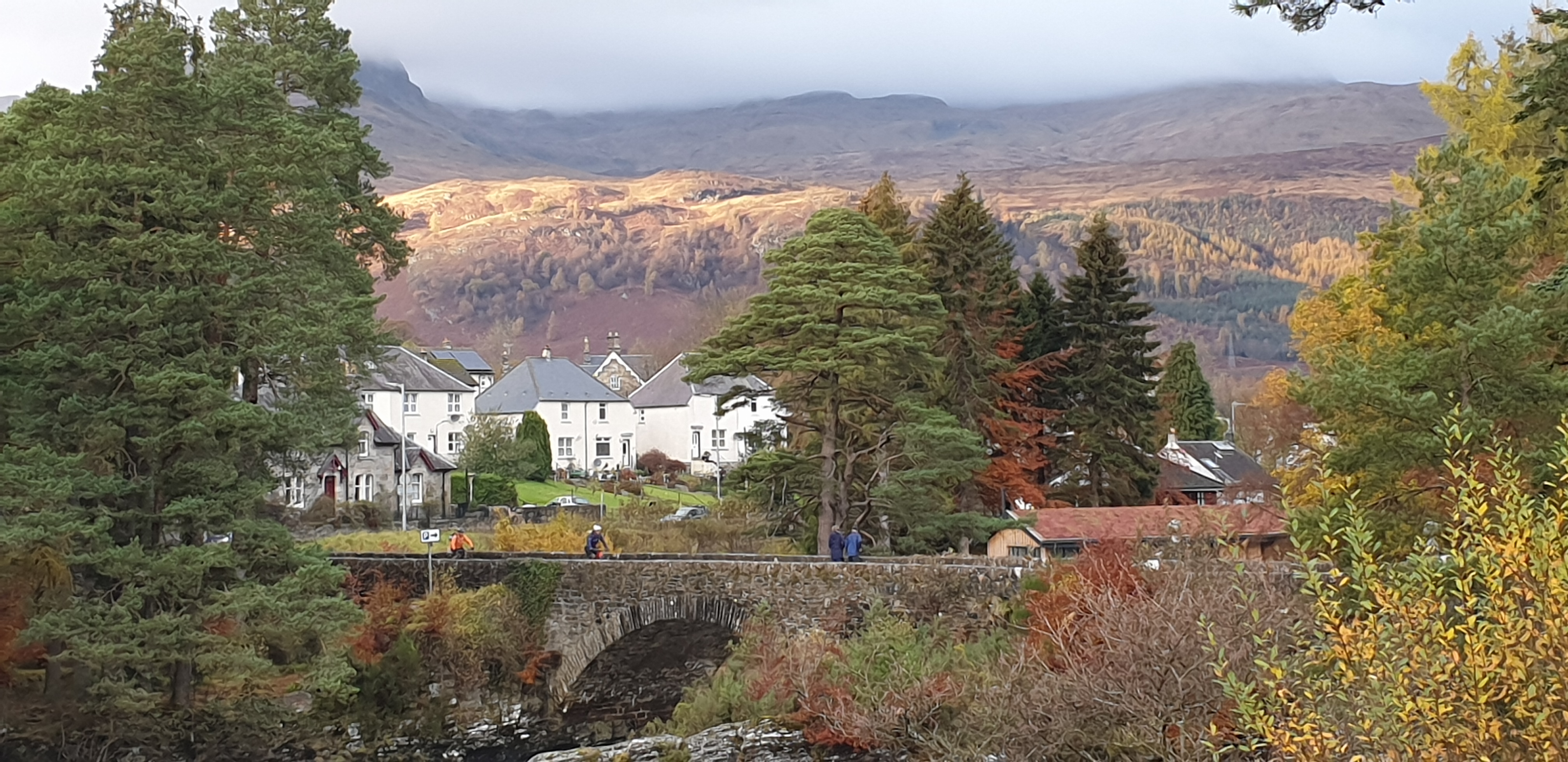 Killin was a happening town, with lots of tourists, cafes and a 30 mile Funrun just finishing. The town is joined in the middle by the Bridge of Dochart that guards over the Falls of Dochart.