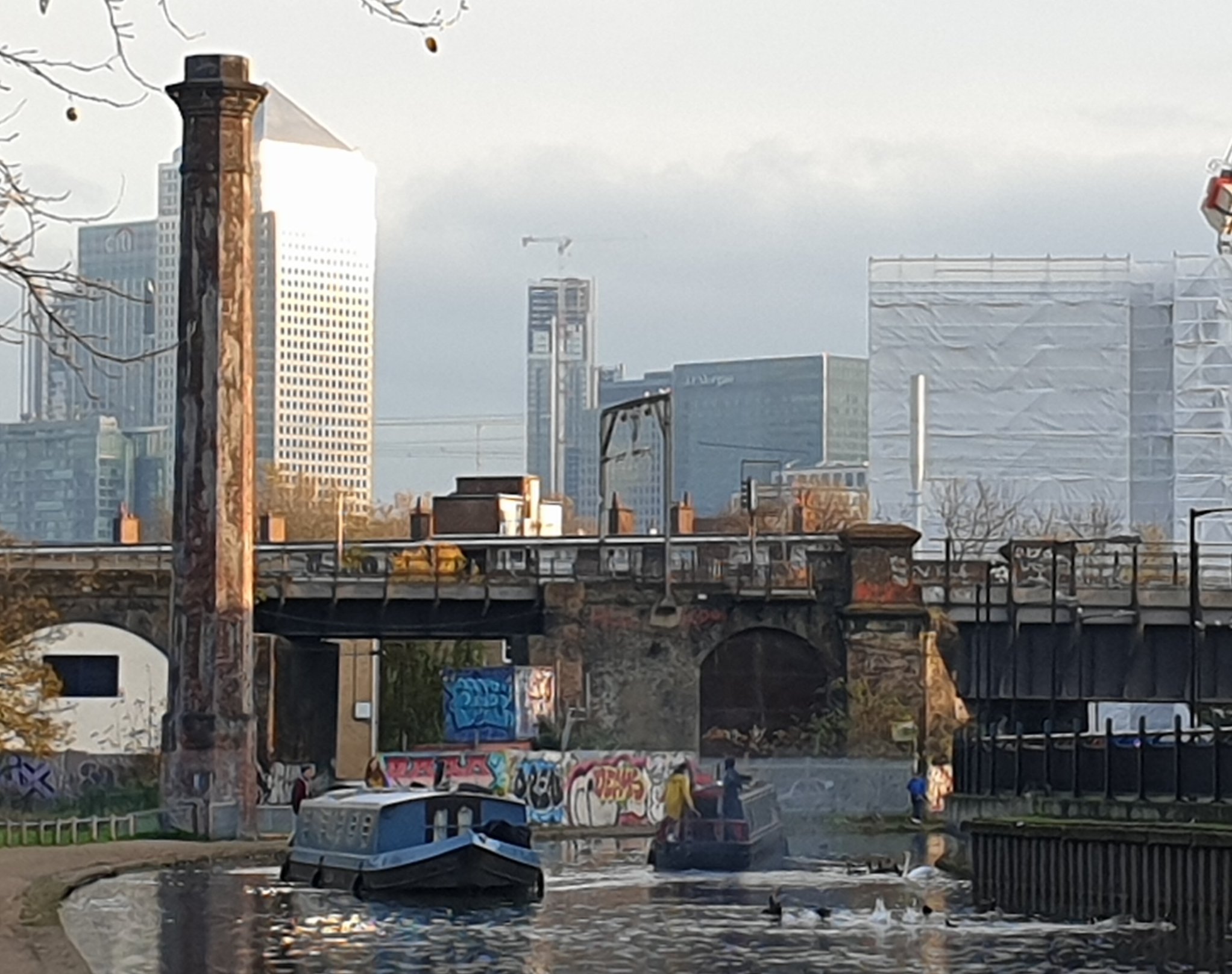 We’d walked so far we realised we had nearly reached the Thames, so kept going, finally emerging at the Limehouse Basin.