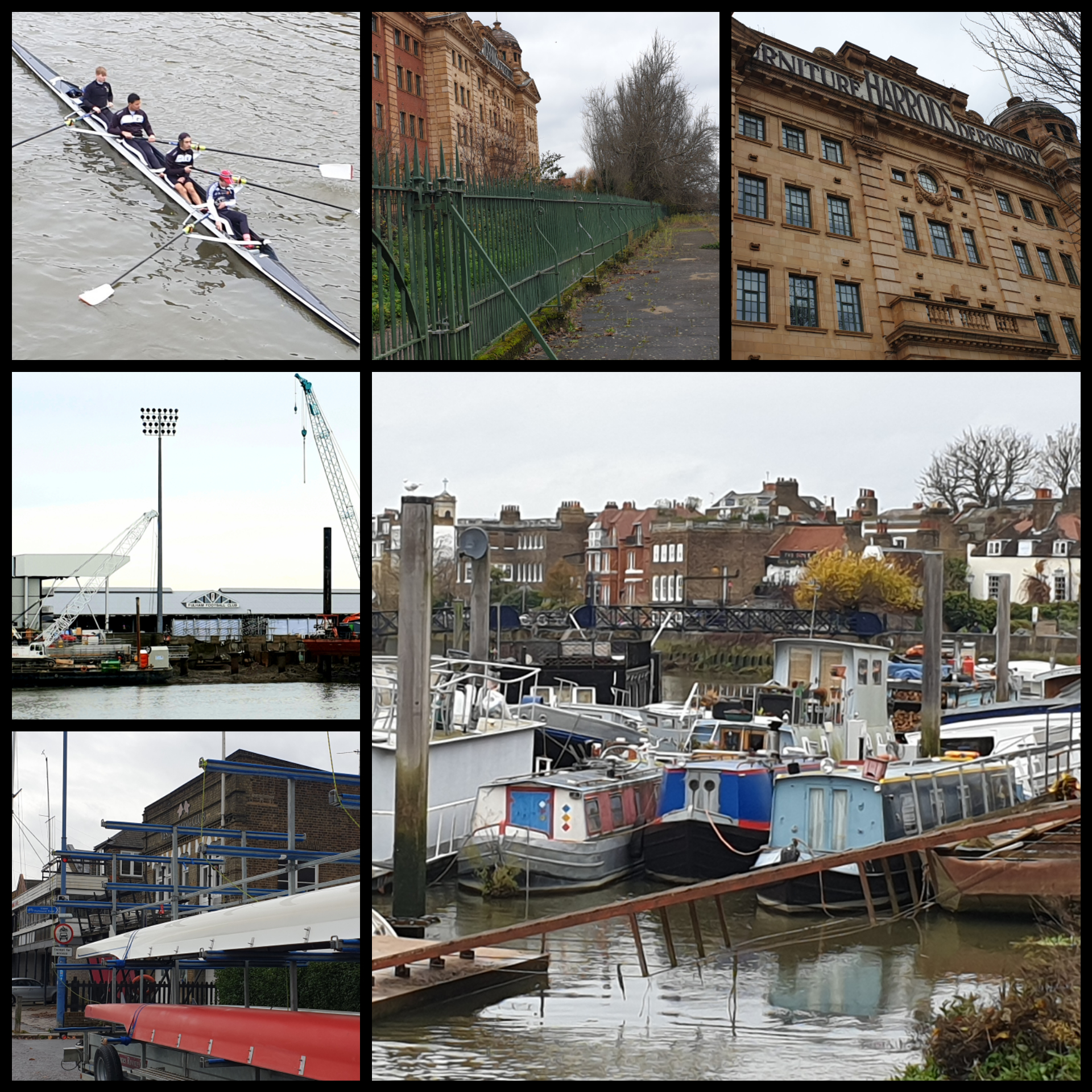 We passed an abandoned warehouse for Harrods that looked as grand as the store itself. It even had it’s own wharf. Fulham football club, spectacularly sited right on the river bank, was getting a makeover.
