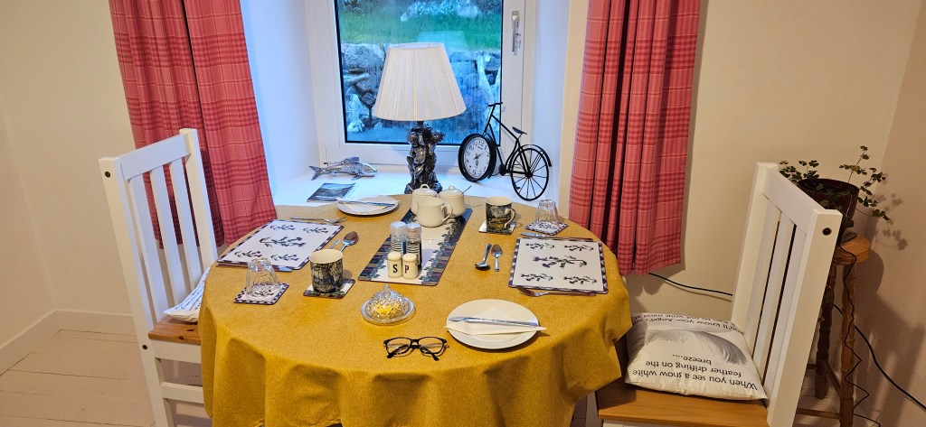 Sandra, our host in Portree was demure and shy. We hardly saw her! Breakfast was all set up for us, and we literally said hello when we arrived and goodbye when we left!