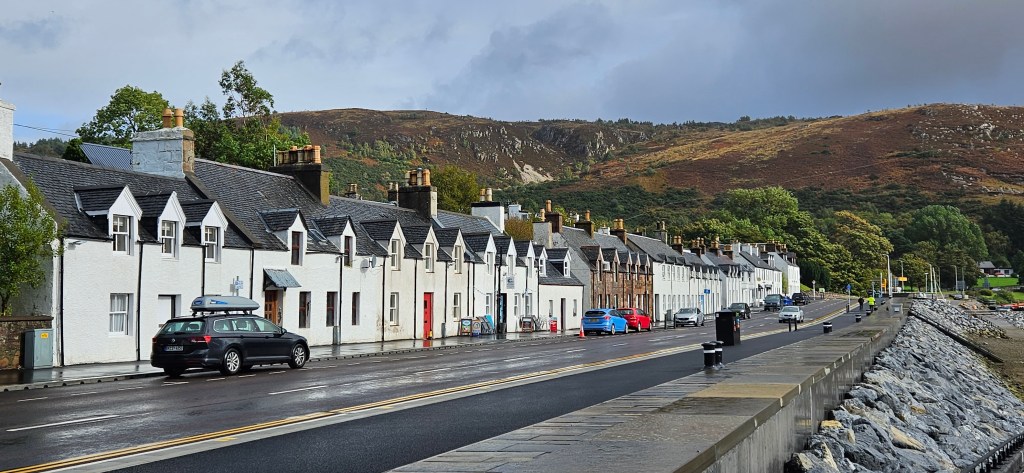 We took a tiny detour into Plockton just for our aqua friend Mary, who stays there everytime she visits Scotland. It is, indeed very pretty, and also has the claim to fame as being the set for the 1990’s TV show Hamish Macbeth. But it is a nightmare to drive into from the main road…single lane and very narrow!