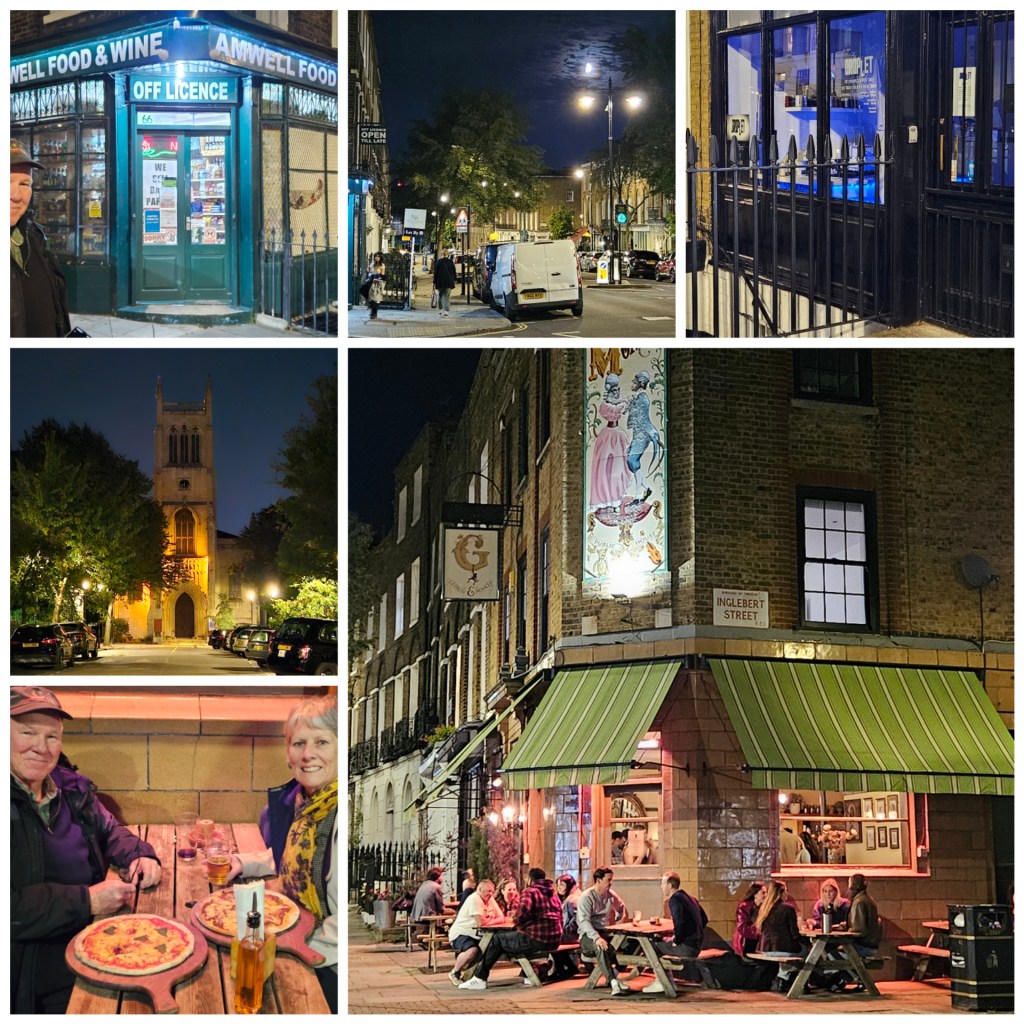 Back in London, we were in search of somewhere close by with some outdoor ambience, so headed up to Angel and Amwell St, where Katie and Chris lived when we visited them in 2019.