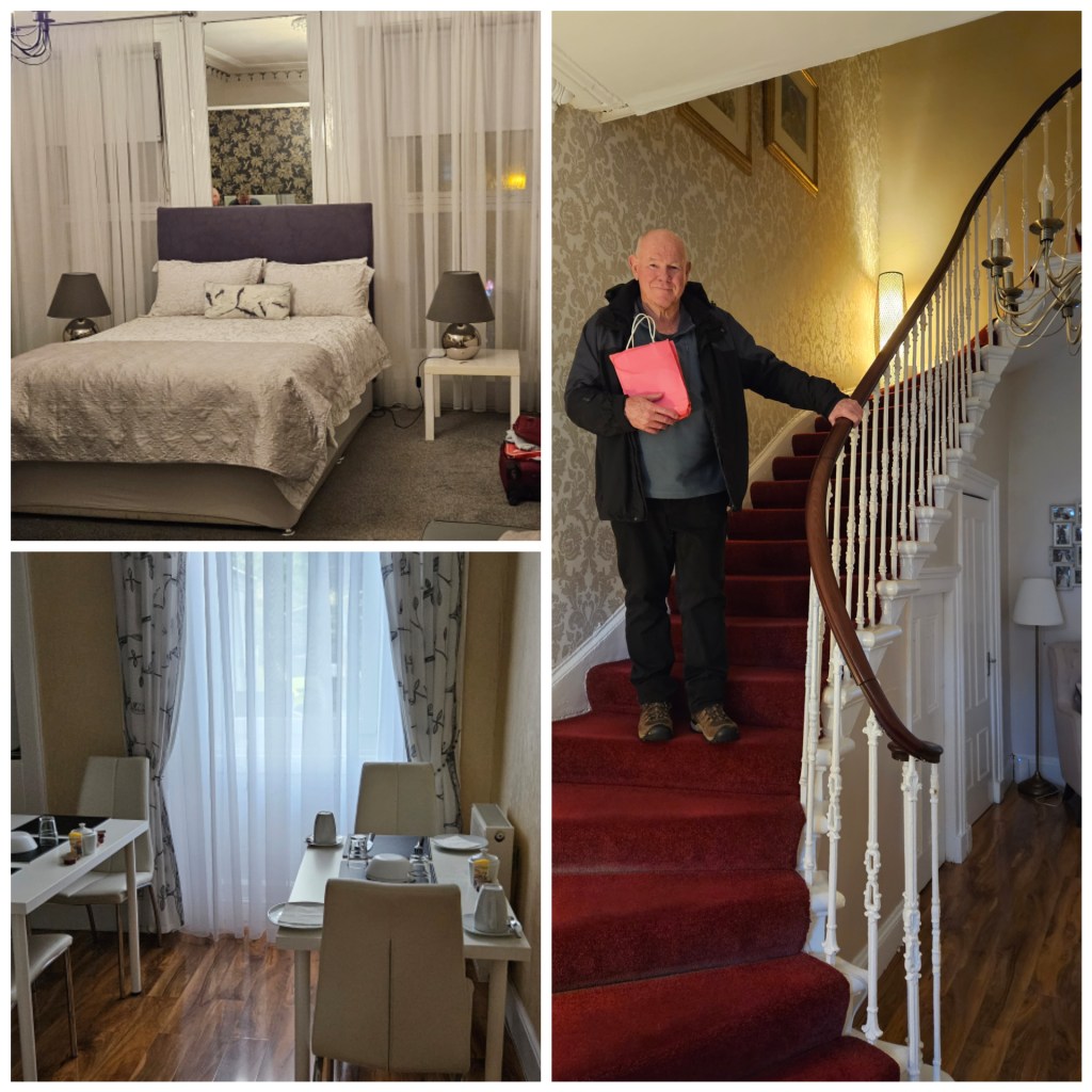 The drive to Glasgow was all motorway, fast, wet and a bit scary. But we arrived safely, were welcomed warmly by Thomas our Airbnb host, into his gorgeous home, and freshened up for our long-awaited rendezvous.