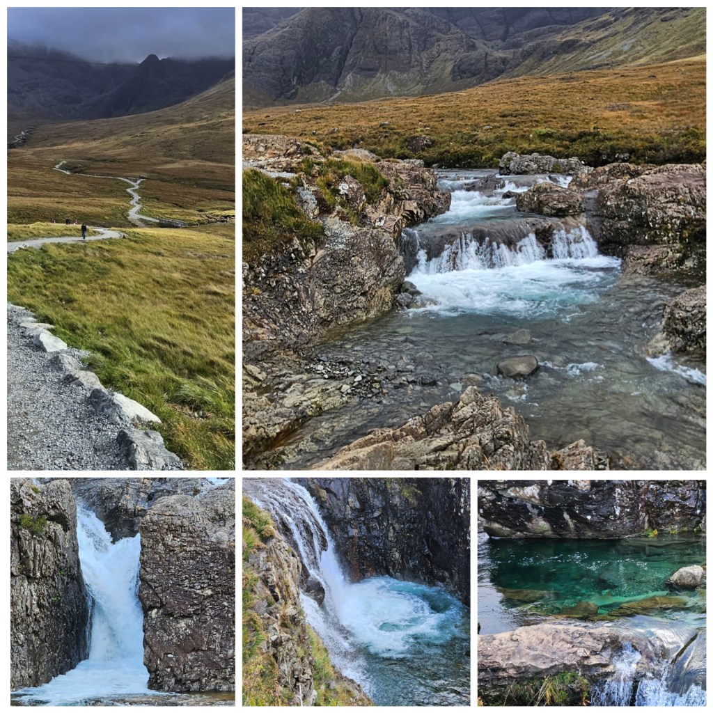 But equally inspiring were other hidden gems, waterfalls tumbling into the sea, the ruins of Duntulm Castle and stranger than fiction, a fairy glen! Yep, in a valley down some twisting laneways just off the main road, was an enchanting natural landscape of conical hills, grass covered mounds. A bit like Hobbitown!