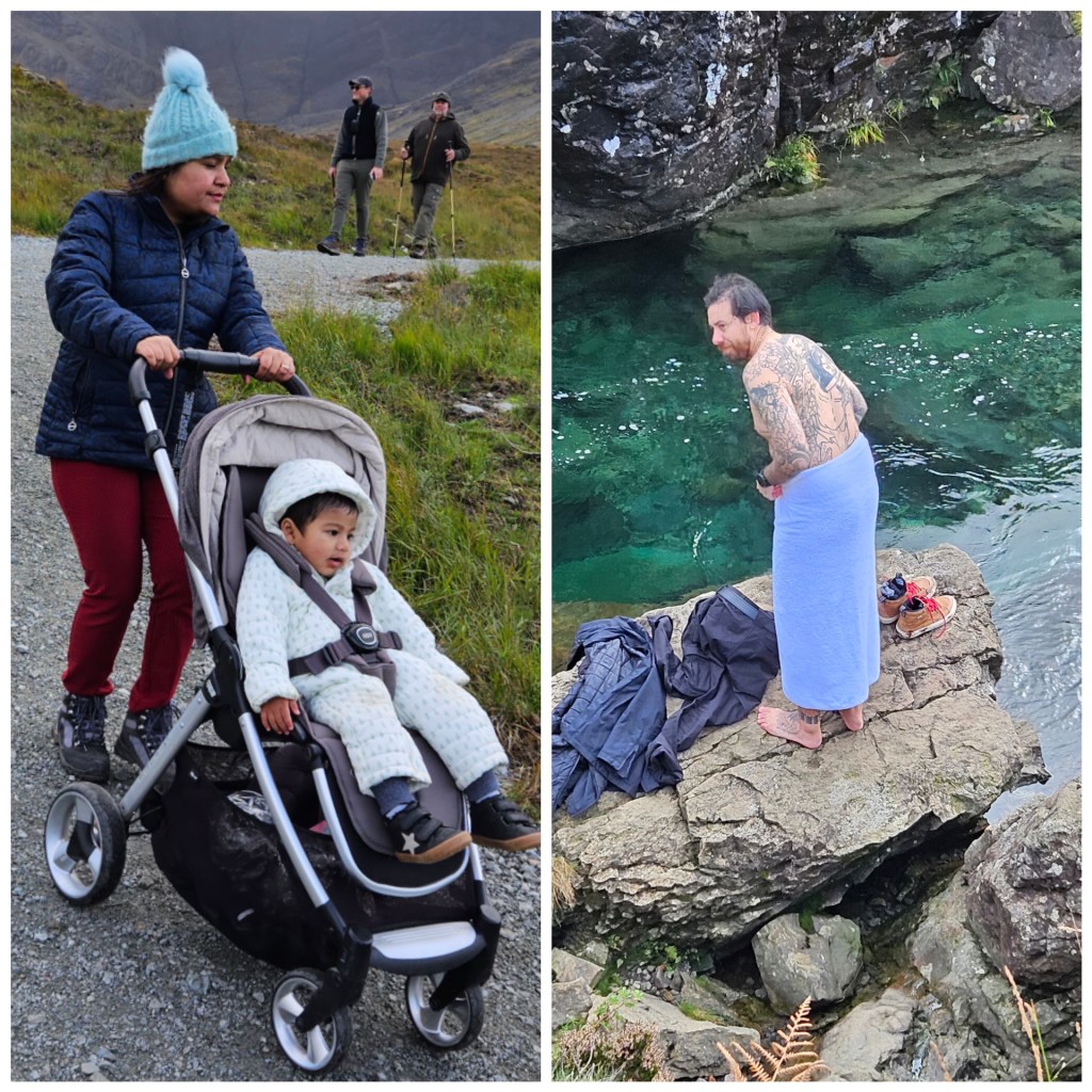 So, we’re not sure if we saw what was actually the Fairy Pools or not, but no matter, it was an entertaining hour or so….this lady got 10/10 for fortitude and this bloke got 10/10 for stupidity!